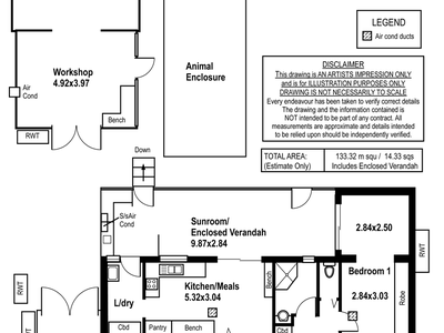 The modern kitchen has ample bench and cupboard space and the bathroom is central to the bedrooms with separate toilet. There are loads of bird aviary's, rainwater tanks, store shed with shelving, garage with drive through to huge double length garage/workshop featuring concrete flooring, power, work bench, shelving and air conditioning.